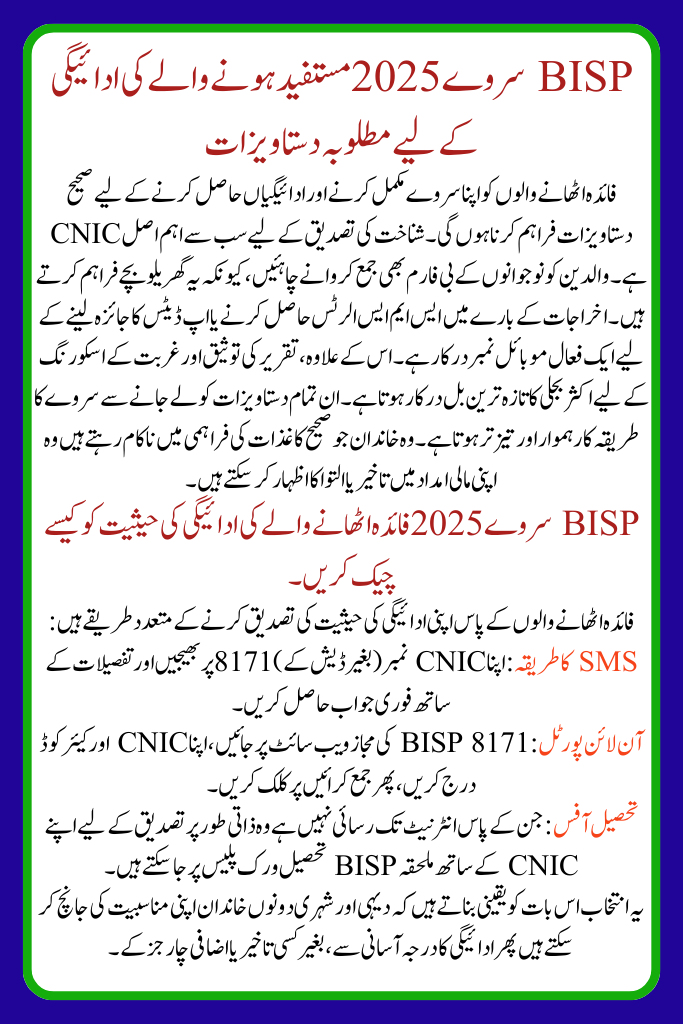 Required Documents for BISP Survey 2025 Beneficiary Payment