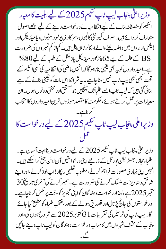 Eligibility Criteria for CM Punjab Laptop Scheme 2025