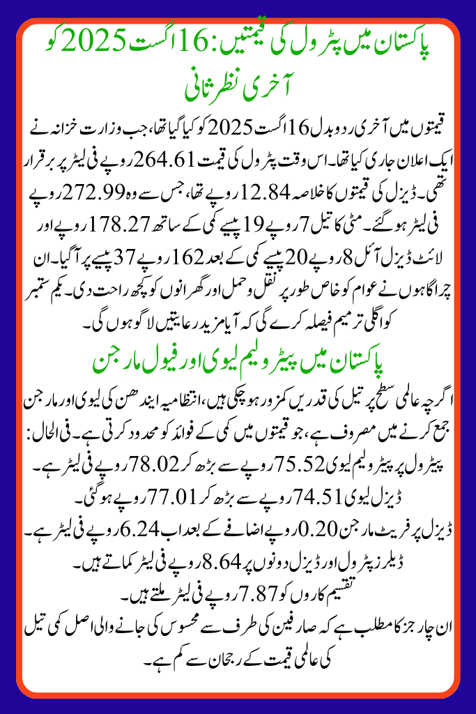Petrol Prices in Pakistan: Last Revision on August 16, 2025