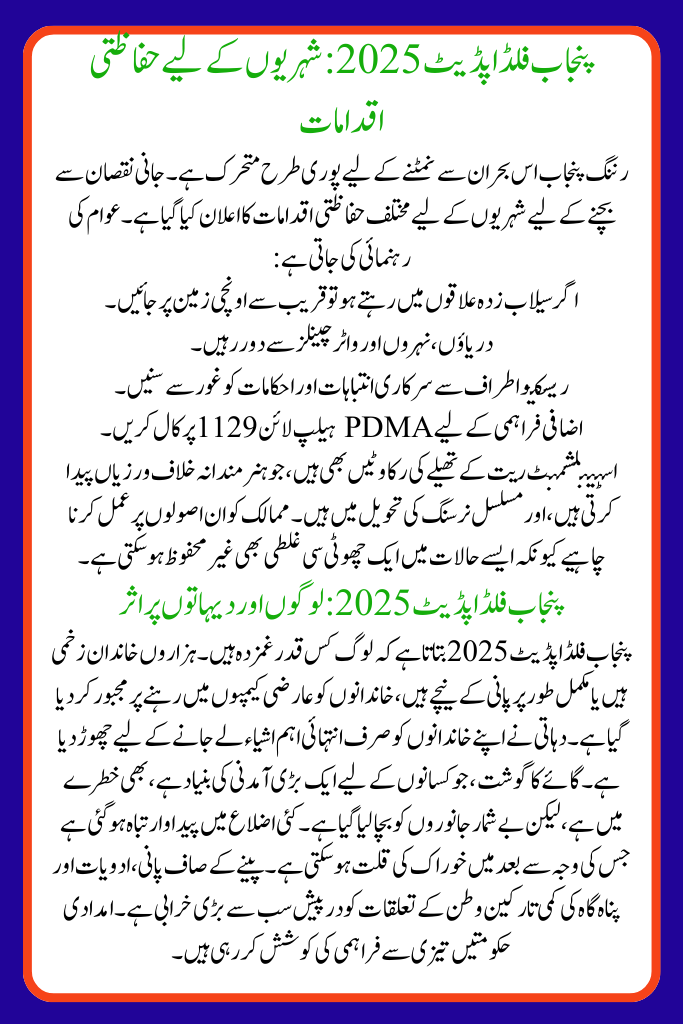 The Punjab running is fully active in conduct the crisis. Different safety steps have been proclaimed for citizens to prevent loss of life. Publics are guided to: