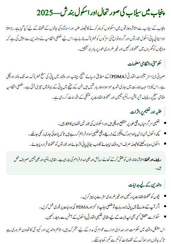 The closure of schools in flood-affected areas of Punjab may be inconvenient for students and families, but the decision highlights the importance of safety above everything else. The step of Schools Closed in Punjab Flood-Hit Areas reminds us that education matters, but life is priceless.